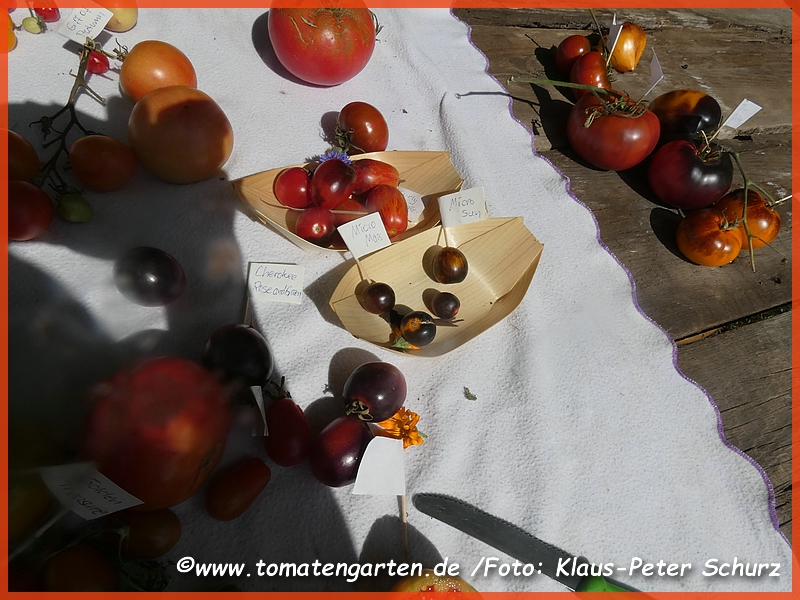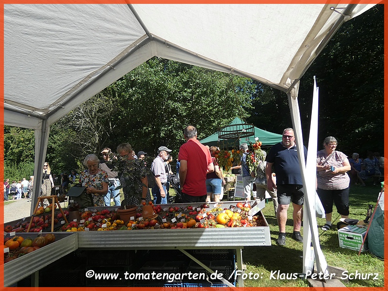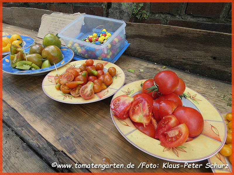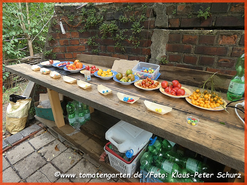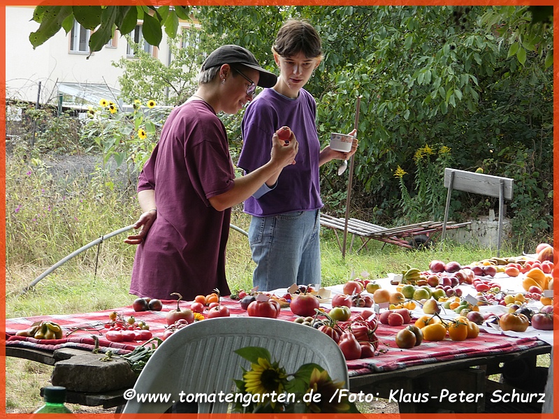 Höhepunkte im August waren das Tomatenfestival in Bad Zwischenahn bei Oldenburg und der Tomatentag in Eberswalde. An beiden Tagen nahm ich aktiv mit einer Kollektion an geernteten Tomaten teil. Zusammen mit "Karierte Tomate" Regine Henschel hatten wir einen Gemeinschaftsstand.