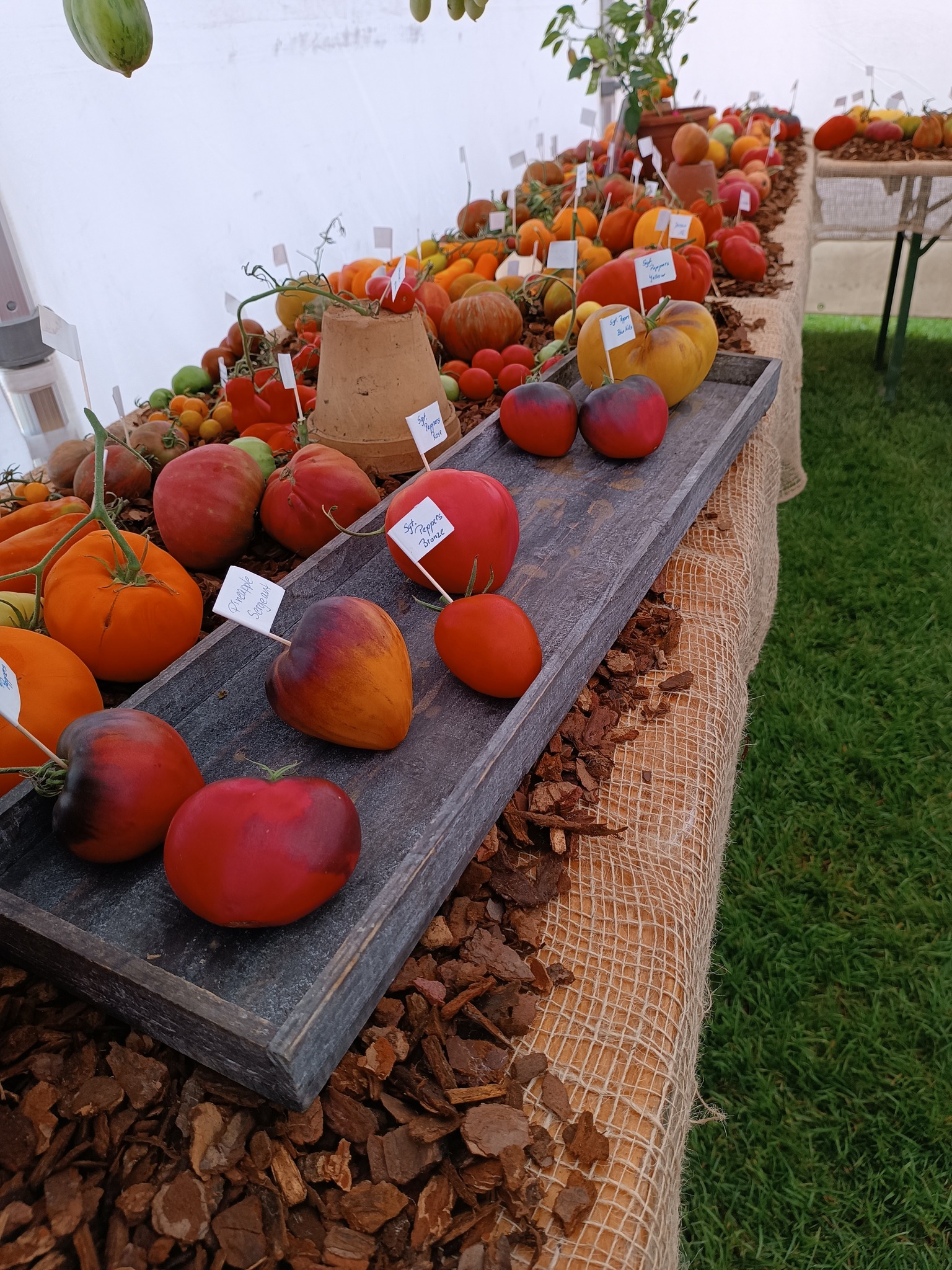 Den Schwung der Tomatentagen versuchte ich nach Leipzig zu tragen. Beim Erntetag der Solawi Allerlei am 02.09. wurden über 100 Sorten präsentiert. Die Wahl der besten Tomate aus dem eigenen Anbau der Solawi gewann die Sorte Ruthje. Auf dem dritten Bild die dritte von rechts.